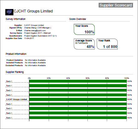 沃尔玛(Wal Mart)于2017年提出的「10亿吨计划」(Gigaton Project),要求供货商共同减碳,目标是在2030年前将供应链所产生的碳排量减少10亿公吨。身为Wal-Mart最大供货商之一的曦爵集团CJCHT积极响应这项行动,在最新的十亿吨减碳计划中,荣获供应炼参与者第一名的成绩。
